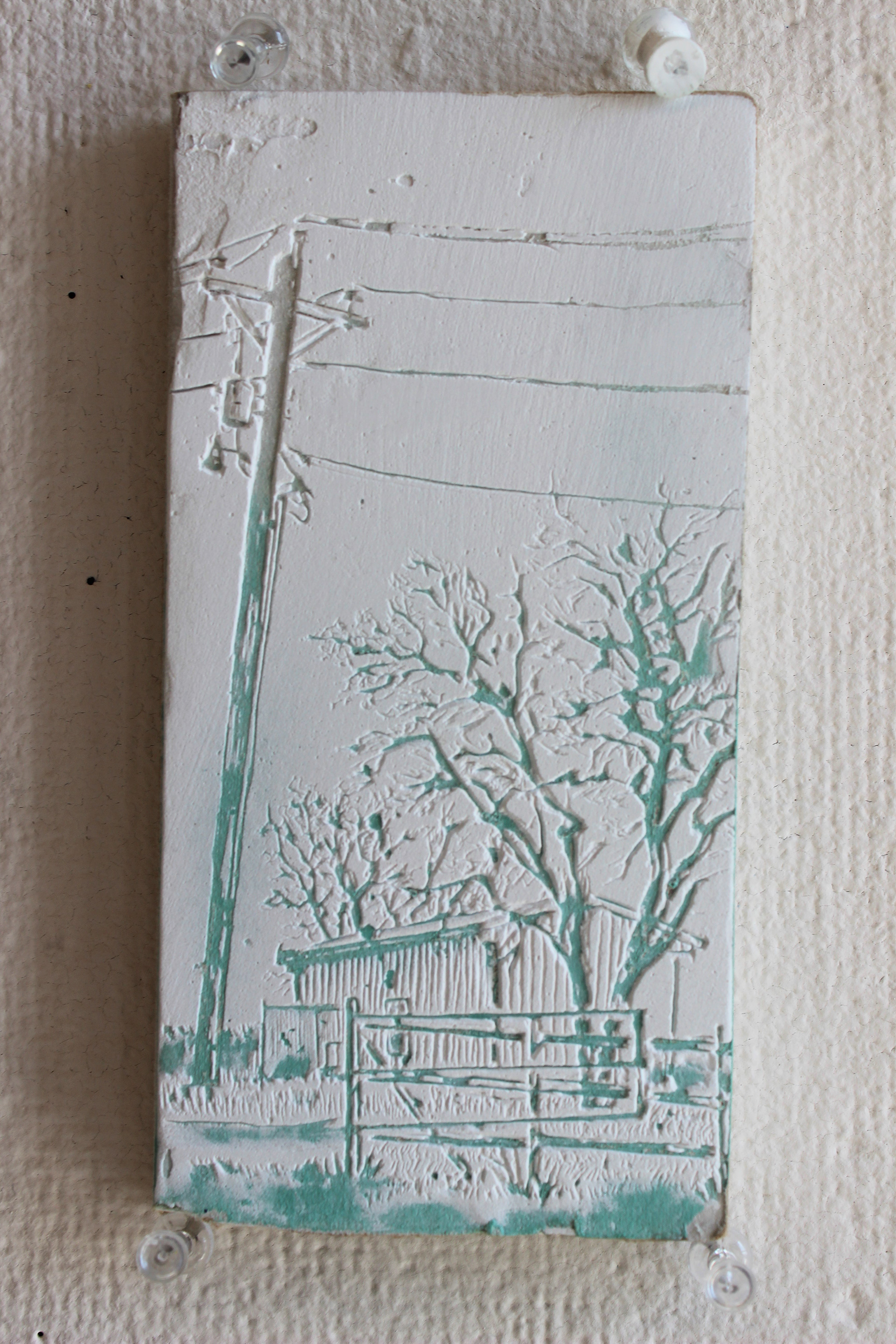 The Joint Compound Carvings are a body of works culminating from experiences that dealt with construction labor and materials, relief print-making, and most of all mortality. To work with something that has an expected in a way which is unexpected reveals to us what potential is inherent in the material. Similar to what a body is capable of the joint compound has an eventual expiration, when settled it doesn't want to move until forces either by man or nature eventually peel it away. Joint Compound, normally applied in thin layers to conjoin segments of Dry-wall, is not meant to be applied in this way which is why the exploration is necessary. Bringing elements of beauty outside of it's supporting role in construction the body of work seeks to interrogate traditional narratives that continue to restrict how we consider the natural world.